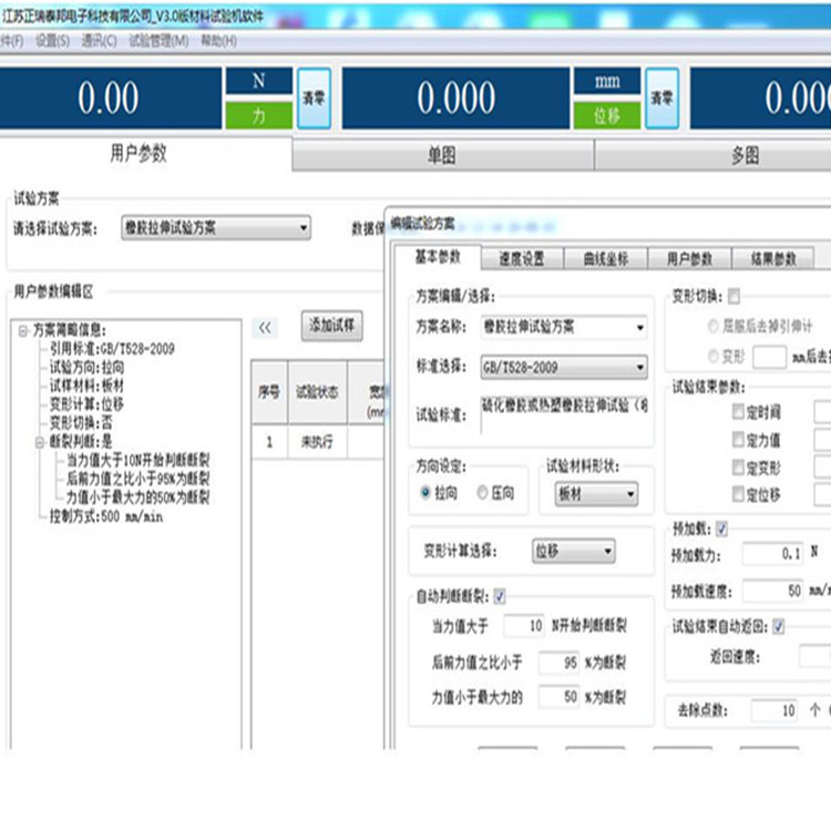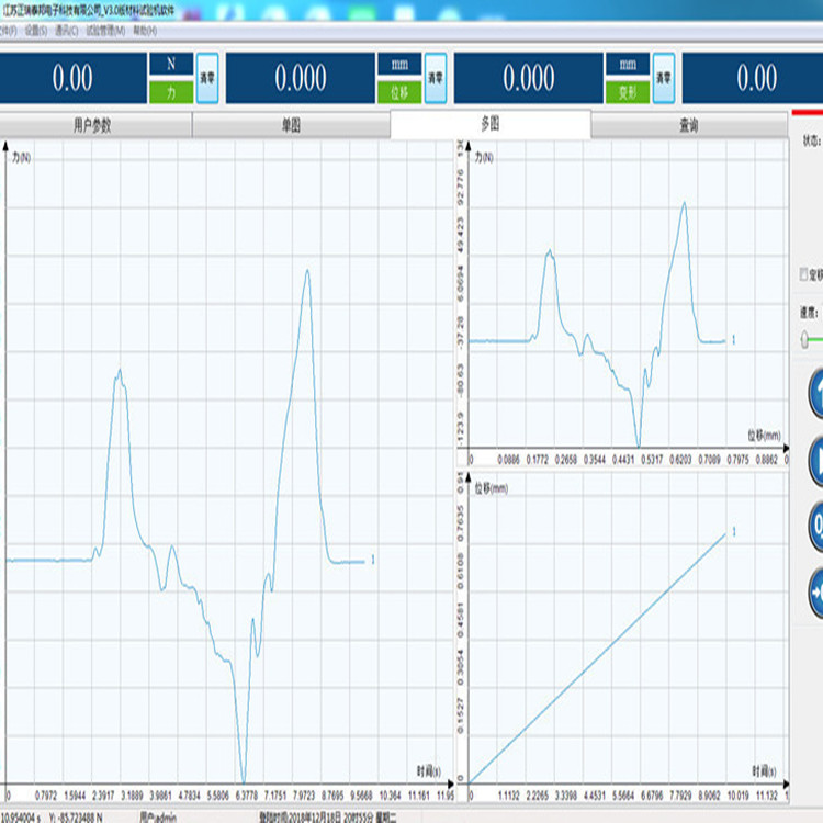 完全開放的試驗方法編輯界面,力-時間、力-位移、位移-時間、抗拉強度-時間、伸長率-時間、應力-應變等曲線圖可任意切換;自動求算拉力、抗拉強度、屈服強度、伸長率、彈性模量、彎曲模量等指標,試驗報告可導入Word或Excel,多次試驗結果可同時展現,一張報表可展現多條試驗曲線,便于用戶對比。